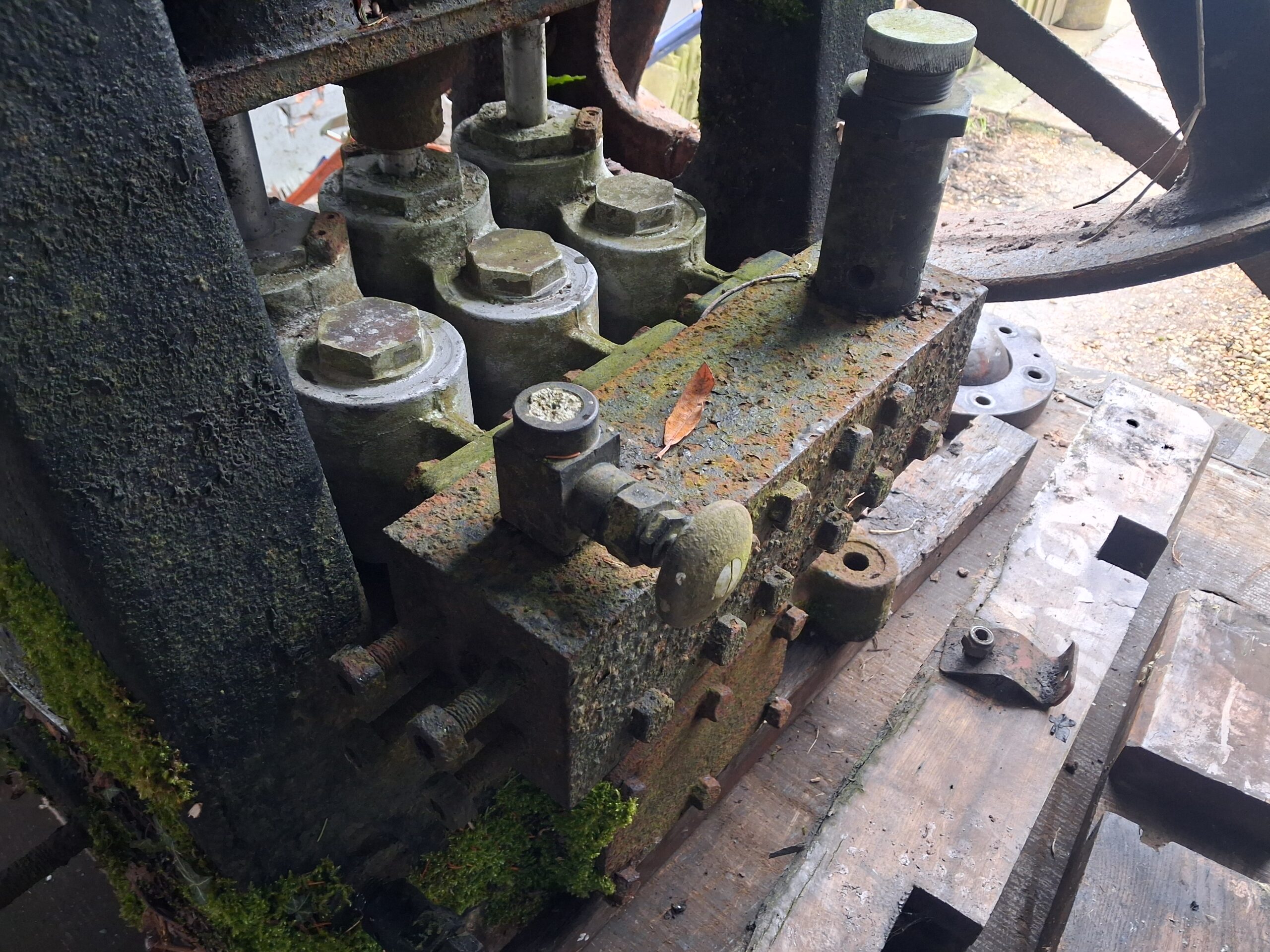 Very large Fielding & Platt triple ram water pump.
