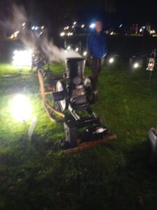 Callum Tracy had his 5hp New model Petter M but due to an issue, all he was able to do was add flames to the evening but his M still ran well.