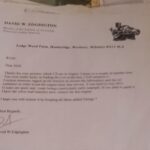 On a different journey to finish clearing out the rubbish in the workshop, I found a wooden box with the original brass oilers in it, also a sales document that came with the engine signed by one of Listers engineers and also a strong cardboard box with Piston rings, fuel pump balls and springs exhaust gaskets and valve springs see pictures’. Finding this was just as enjoyable as finding the engine, a once in a lifetime find, I still own this engine and have great pleasure in running it at my open days.